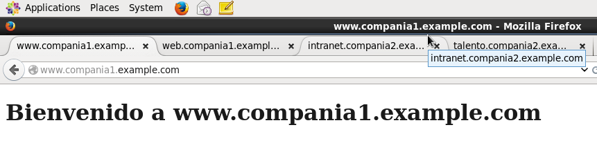 Si se deseara crear un VirtualHost basado en ip entonces en la parte que dice *:80 se cambia el asterisco por la dirección ip que se le quiere asignar. Una vez realizado esto solo que da reiniciar el servicio de apache y recordar que si el dominio no esta registrado en el servidor DNS, no funcionará. El resultado de probar a través de un navegador sería el siguiente.